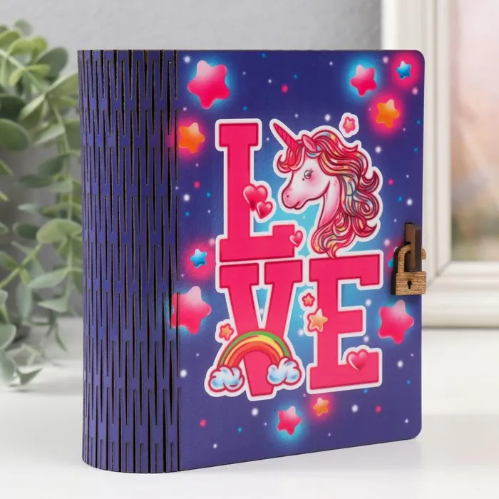 Деревянная шкатулка-книга «Единорожка» 14×12х5 см — Характеристики