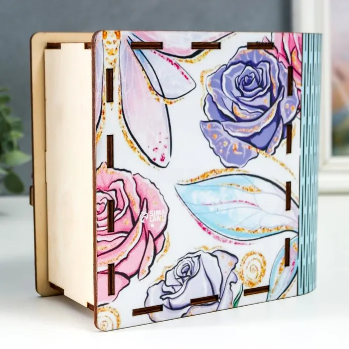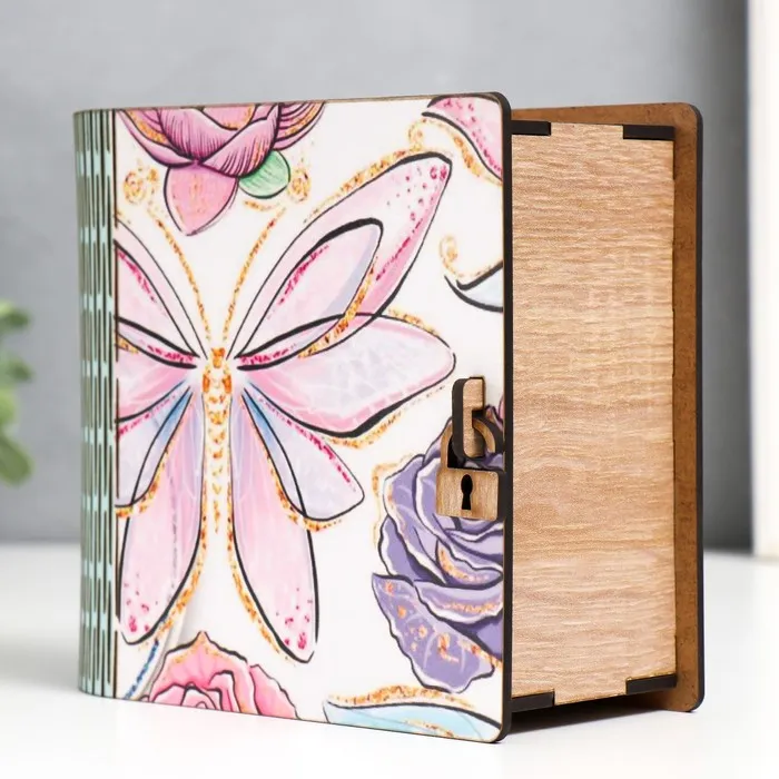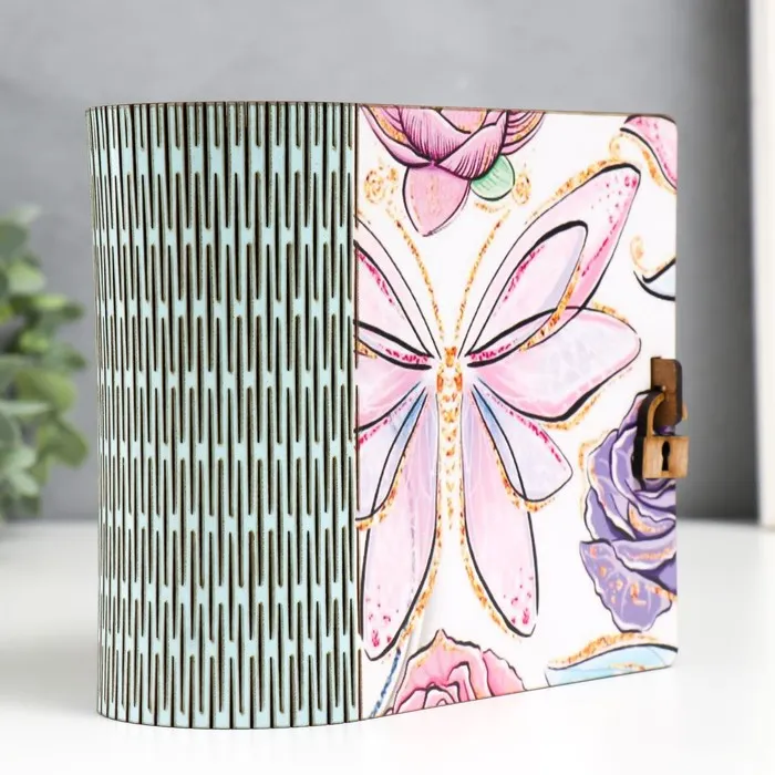 Деревянная шкатулка-книга «Розы, бабочки» 14×14 см — Характеристики