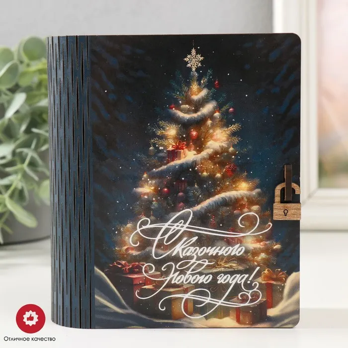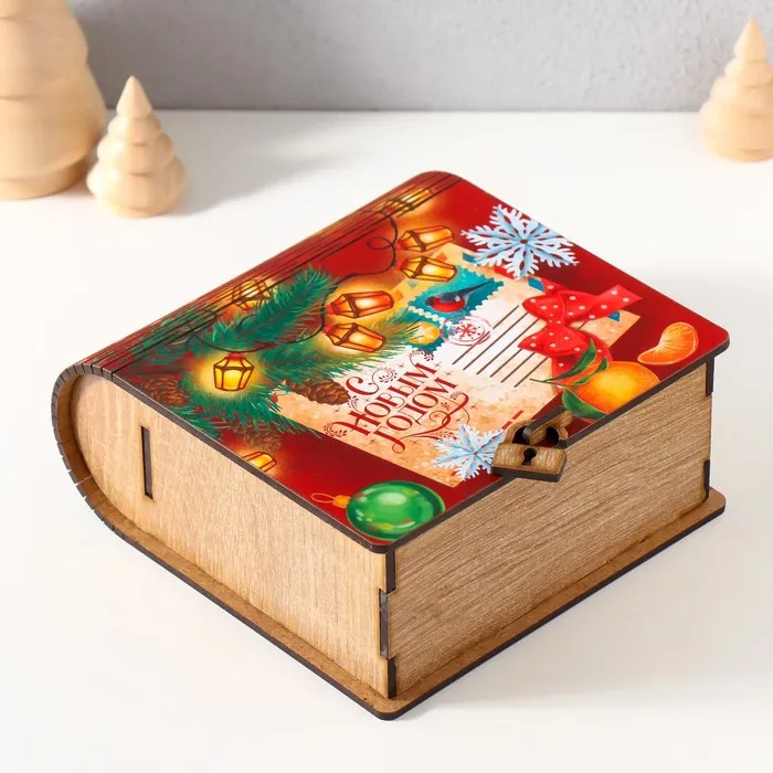 Деревянная шкатулка-книга «Сказочного Нового года», для подарков, 14×12×5 см — Характеристики