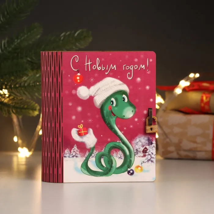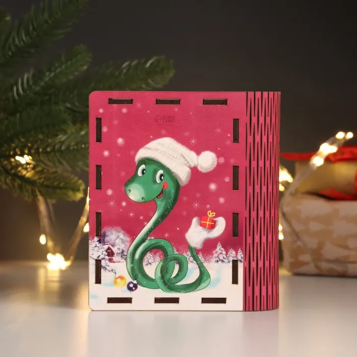 Деревянная шкатулка-книга «Змейка с варежкой. С Новым годом», 14×12×5 см — Характеристики