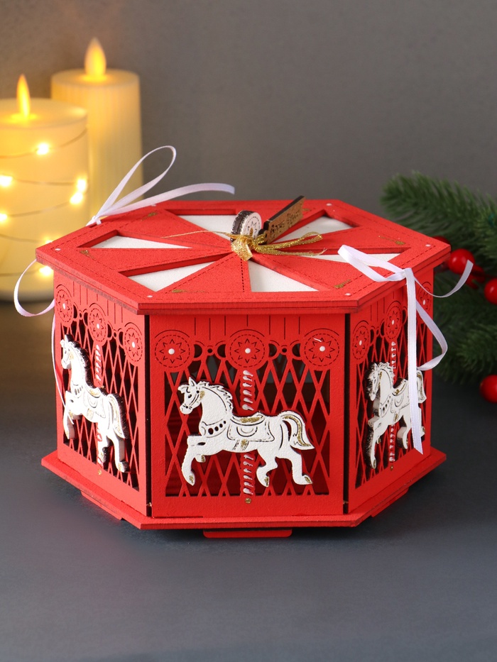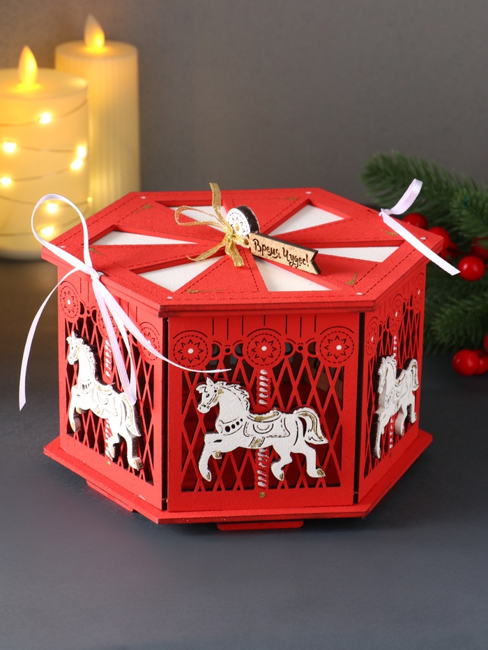 Позвольте себе перенестись в мир беззаботного праздника, где даже самые обычные вещи превращаются в источник радости и волшебства. Эта шкатулка, выполненная в форме нарядной карусели, словно сошедшей с рождественской ярмарки, станет не просто хранилищем для ценностей, а настоящим центром притяжения взглядов и положительных эмоций. Её замысловатая фигурная форма и насыщенный красный цвет мгновенно создают в помещении атмосферу торжества и веселья.