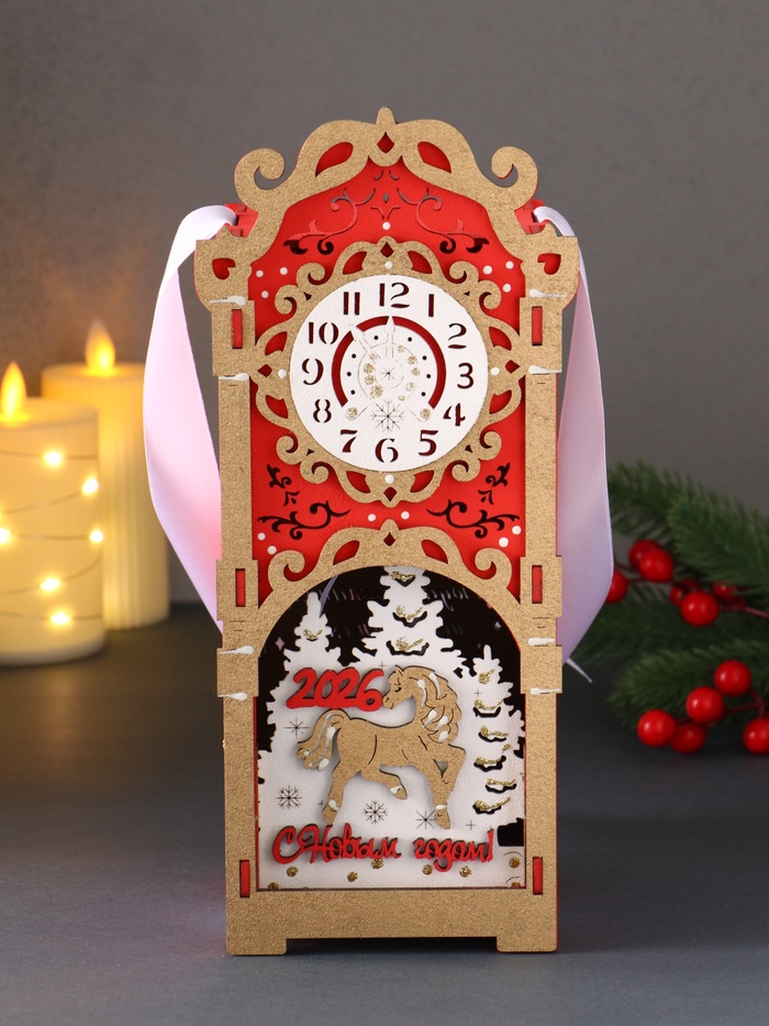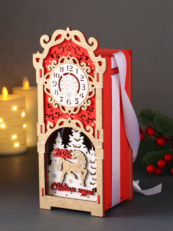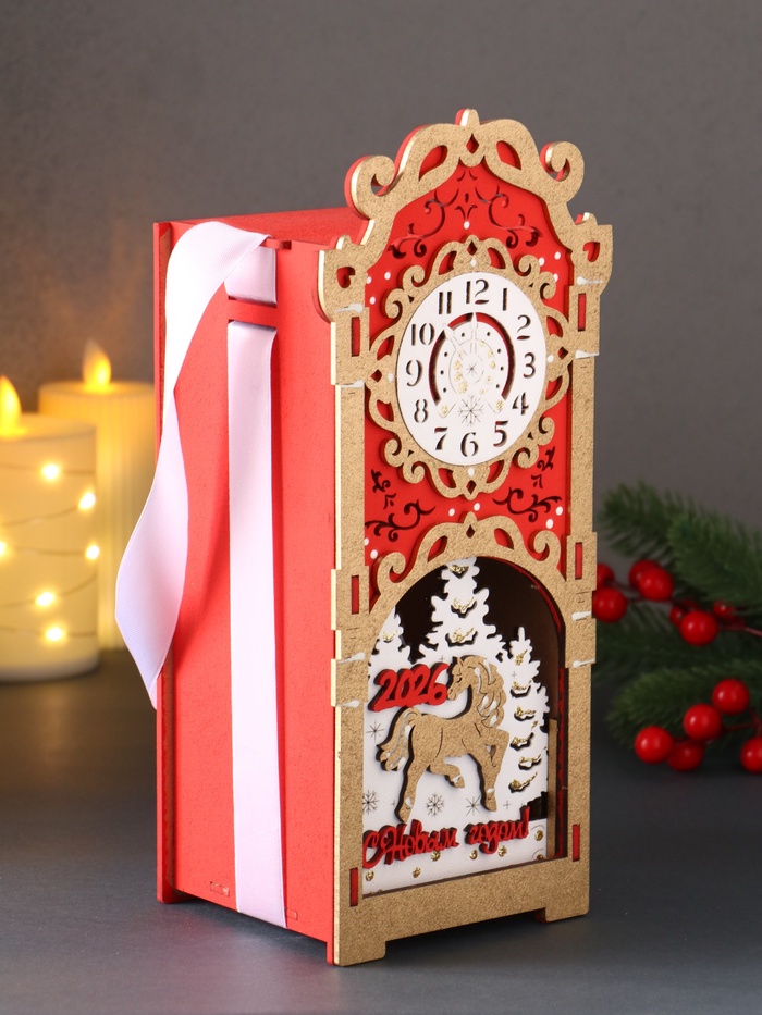 Деревянная шкатулка подарочная «Лошадка 2026», упаковка с фигуркой, 12×10×27, красный — Характеристики