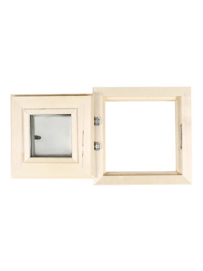 Деревянное окно для бани, 30×30 см, стеклопакет — Характеристики