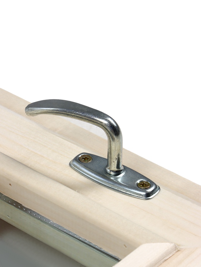 Особенности установки: монтаж окна проводят в подготовленный проём. Готовое окно не требует дополнительной отделки — его можно покрыть защитным составом для древесины.