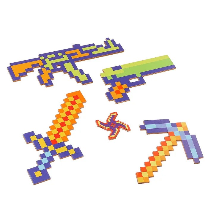 Набор деревянного оружия «Пиксели» — это идеальный подарок для мальчиков и девочек на 23 Февраля или для активных игр в любое время. В комплекте пять предметов: меч, пистолет, кирка и ружьё, которые помогут ребёнку окунуться в мир приключений и почувствовать себя настоящим героем. Игрушки выполнены из экологичного дерева, безопасны и подходят для детей от 3 лет.