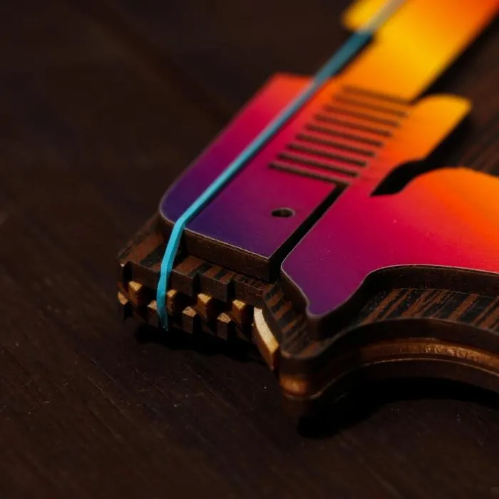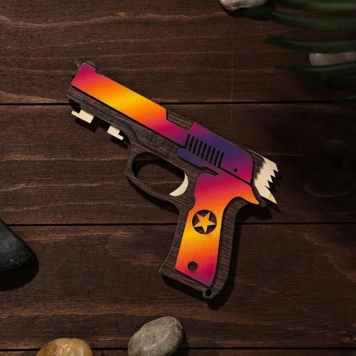 Деревянное сувенирное оружие абсолютно безопасно, оно не имеет острых углов и тщательно отшлифовано, поэтому исключает порезы и занозы. Сувенир повторяет внешний вид оригинального оружия, поэтому с таким изделием будет интересно играть в тематические игры.