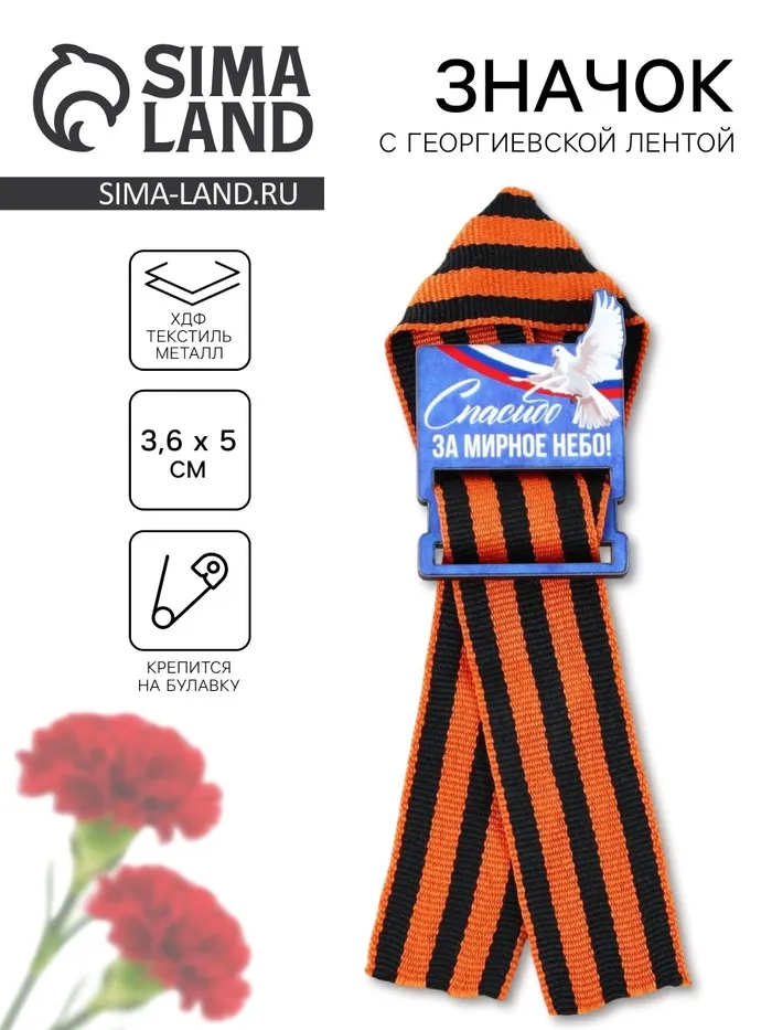 Деревянный орден с георгиевской лентой на 9 Мая «Спасибо за мирное небо», 4.4×6.3 см — Характеристики