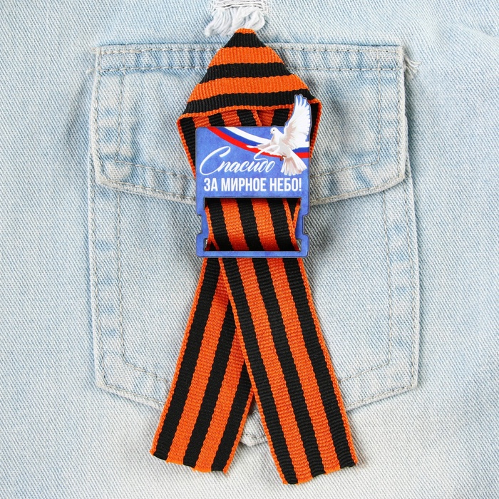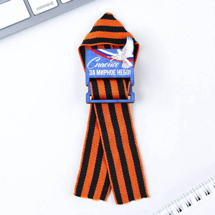 Деревянный орден с георгиевской лентой на 9 Мая «Спасибо за мирное небо», 4.4×6.3 см