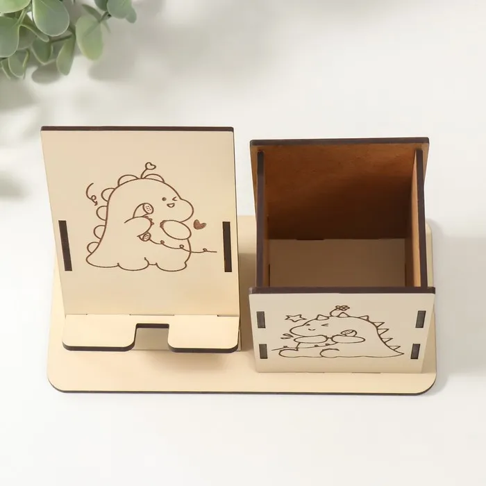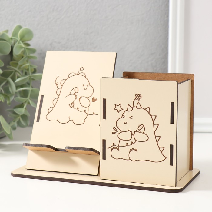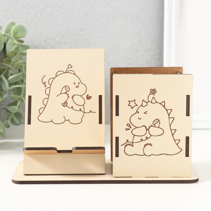 Деревянный органайзер настольный для канцелярии «Дракоша», набор 9 деталей, с подставкой под телефон, карандашница, 18×12.5×9 см