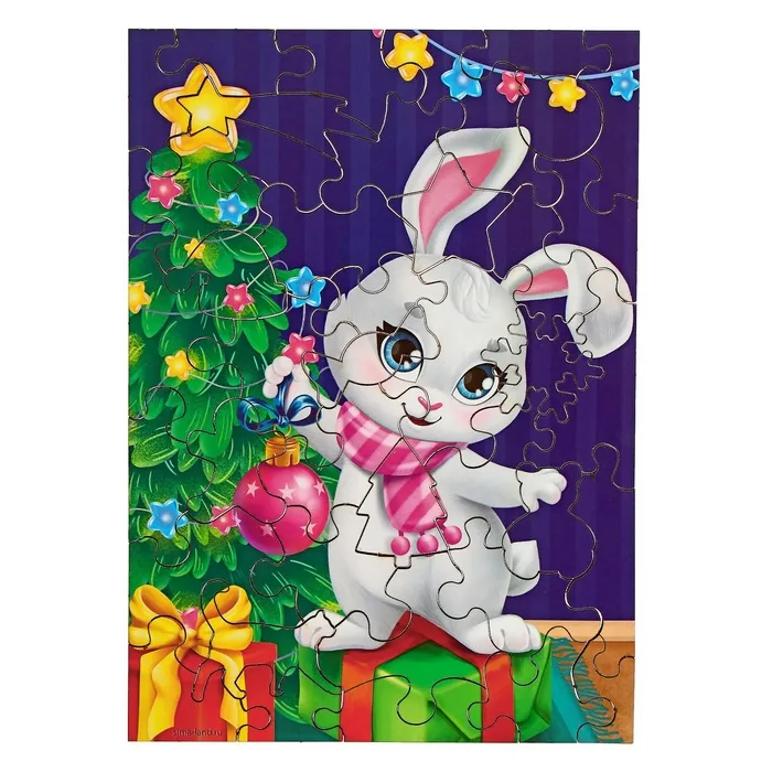 Пазл «Поздравления от зайки» — то, что нужно для полезного и интересного досуга! Такой подарок поможет ребёнку скрасить ожидание Нового года, а также потренировать мелкую моторику, внимательность, логическое мышление и память.