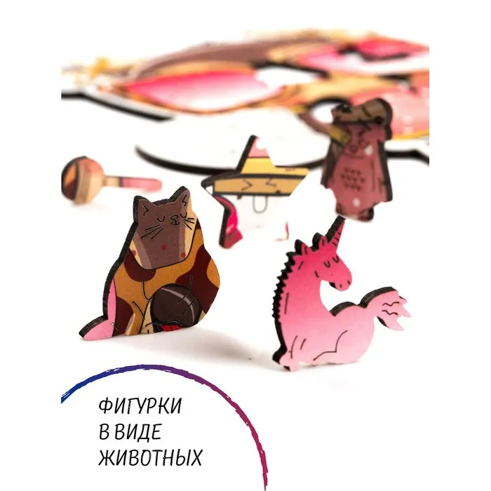 Деревянные фигурные пазлы привлекут внимание детей своим ярким дизайном. Все детали нестандартной формы — вы не встретите двух одинаковых частей: элементы причудливо изогнуты или выполнены в виде предметов, растений, животных. Соберите фигурный пазл и сделайте получившуюся картинку предметом своего интерьера.