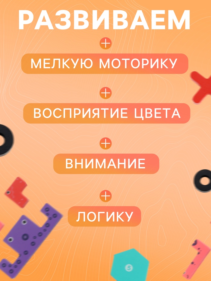Что развивает набор: логическое мышление, координацию рук, усидчивость, внимание, понимание формы и структуры, первые навыки счёта и игровые правила. Разные типы заданий удерживают интерес и подходят как для самостоятельной игры, так и для занятий вместе с родителями.
