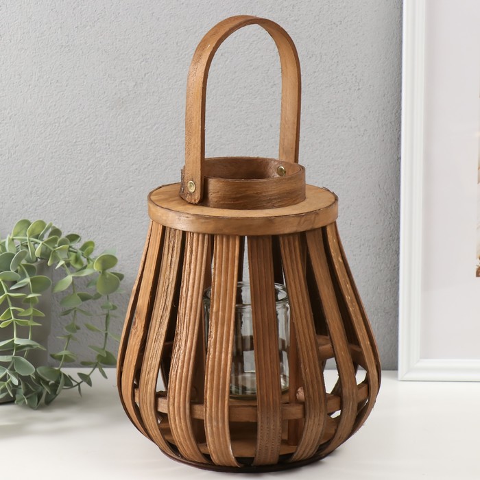 Деревянный подсвечник-фонарь на 1 свечу «Эко-фонарь», коричневый 10×22×24 см — Характеристики