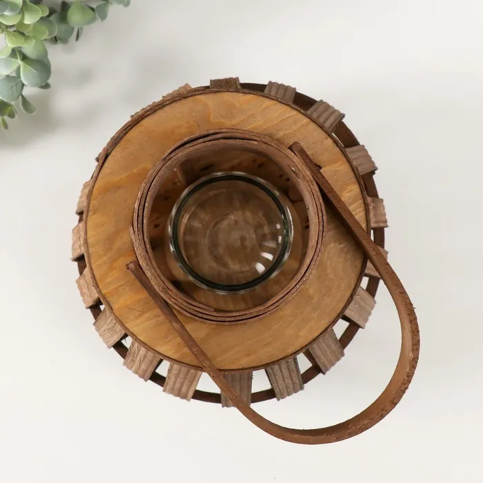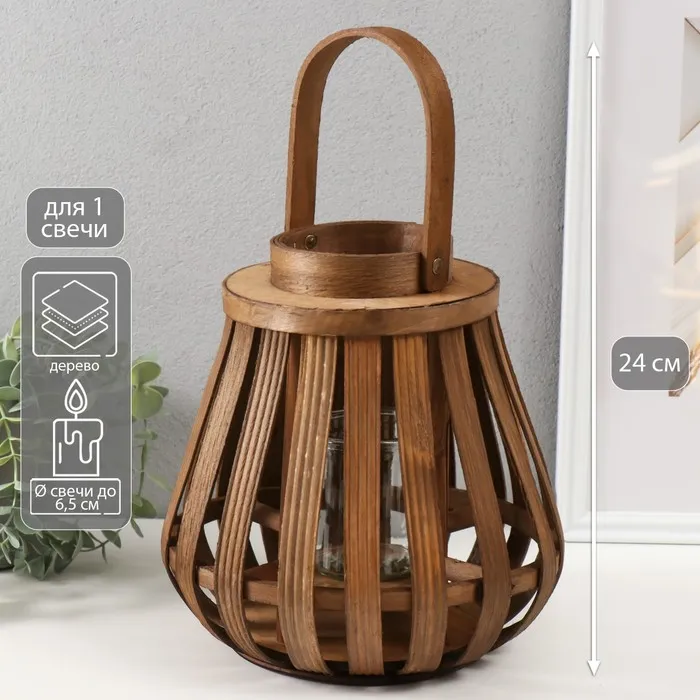 Деревянный подсвечник-фонарь на 1 свечу «Эко-фонарь», коричневый 10×22×24 см — Характеристики