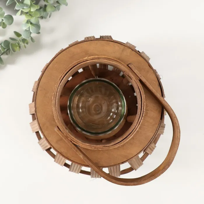 Деревянный подсвечник-фонарь на 1 свечу «Эко-фонарь», коричневый 12×27×30 см — Характеристики