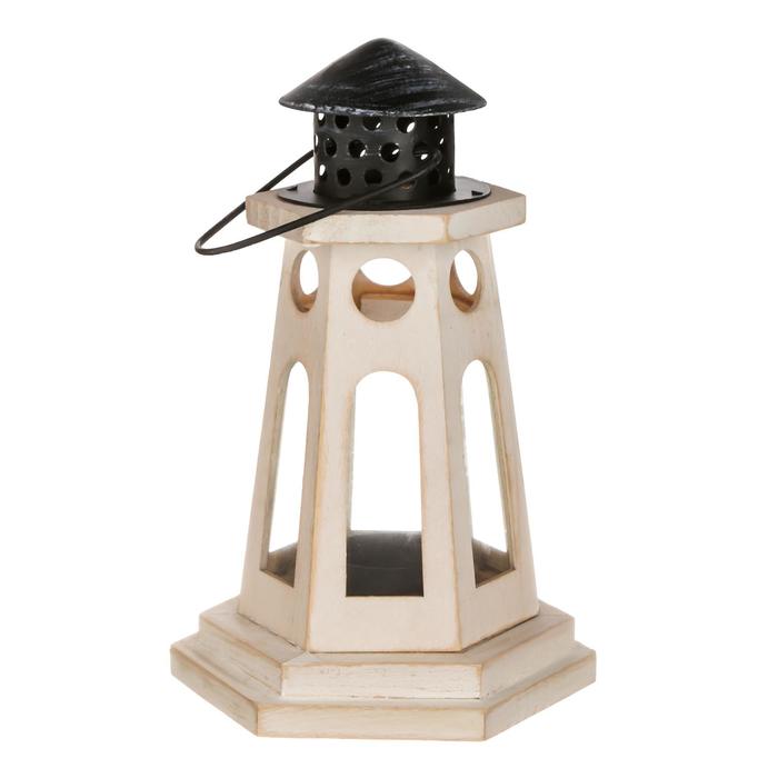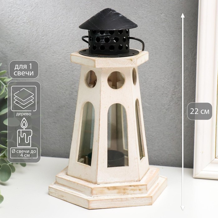 Деревянный подсвечник-фонарь на 1 свечу «Маяк», белый, 22×13.8×12.8 см — Характеристики