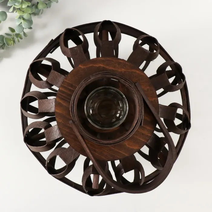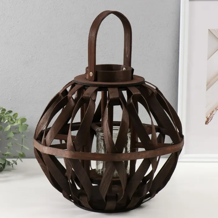 Деревянный подсвечник-фонарь на 1 свечу «Петельки», т. коричневый, 34х34х30 см — Характеристики