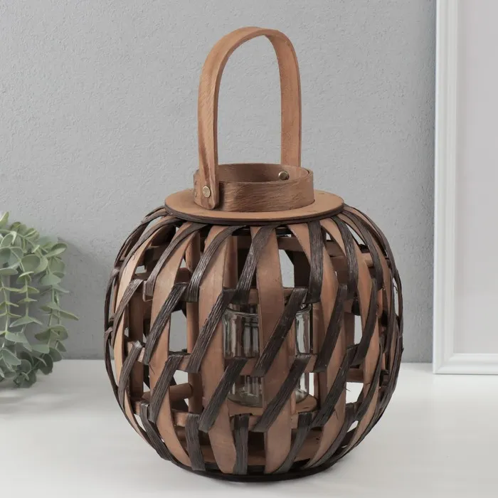 Деревянный подсвечник-фонарь на 1 свечу «Плетение», бежево-коричневый 10×24×24 см — Характеристики
