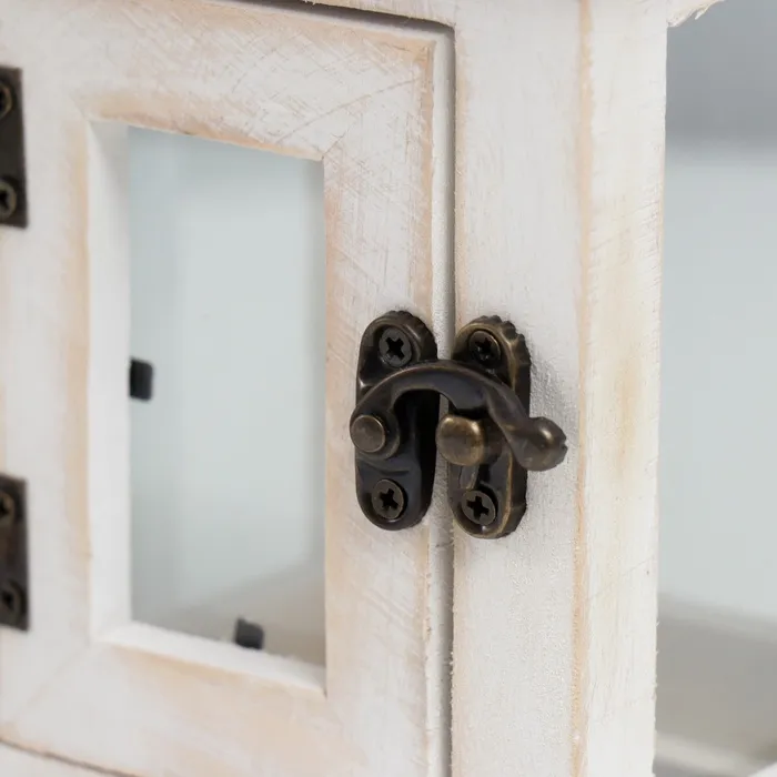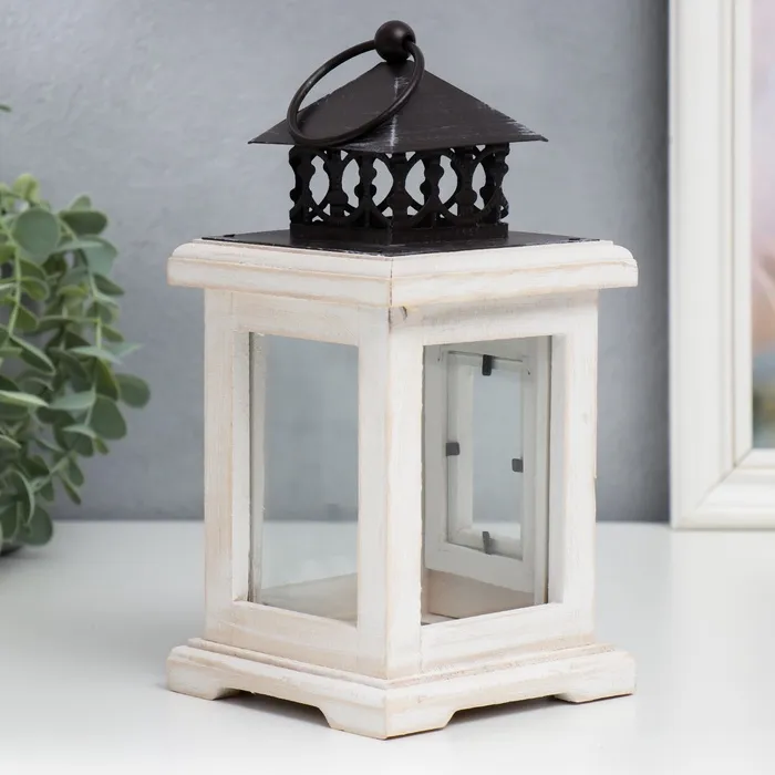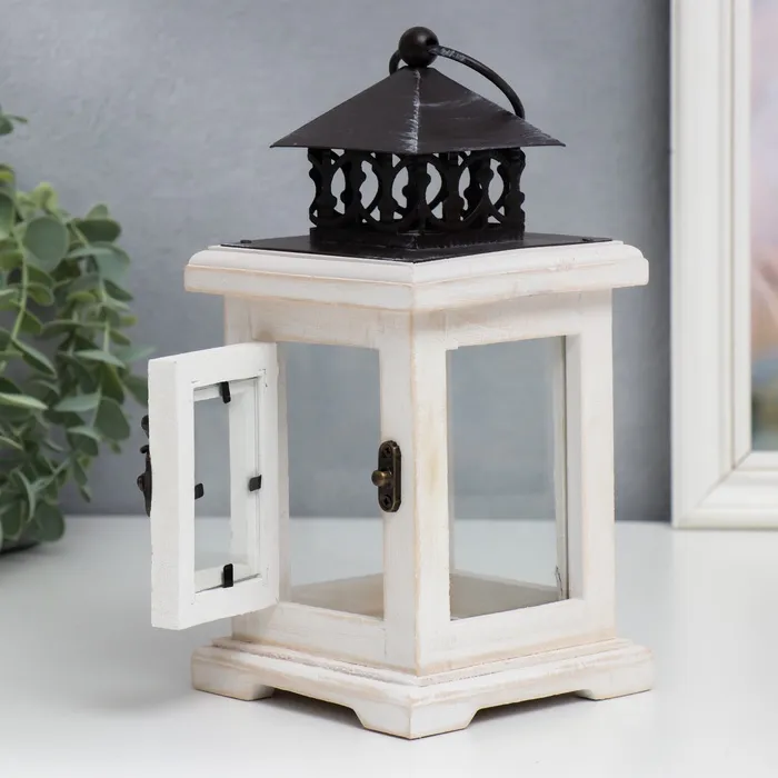 Деревянный подсвечник-фонарь на 1 свечу «С дверцей», белый состаренный, 22×11.2×11.2 см — Характеристики