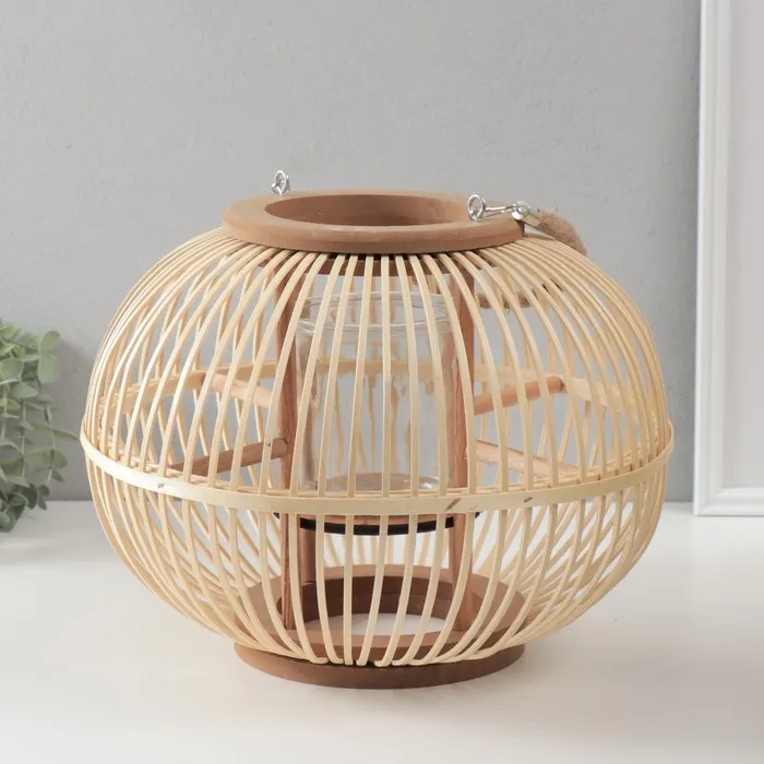 Деревянный подсвечник-фонарь на 1 свечу «Шар из лозы», натуральный 18×36×28 см — Характеристики