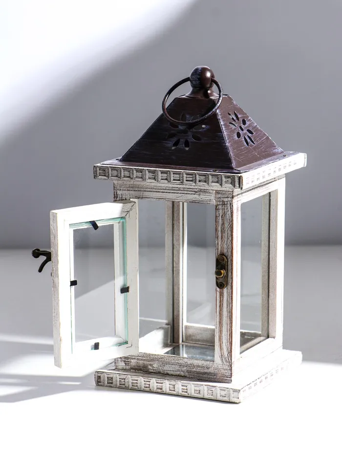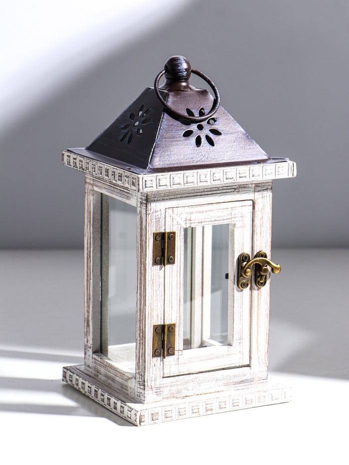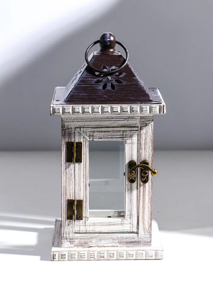 Деревянный подсвечник-фонарь на 1 свечу «Состаренный», белый, 12.5×12.5×25 см — Характеристики