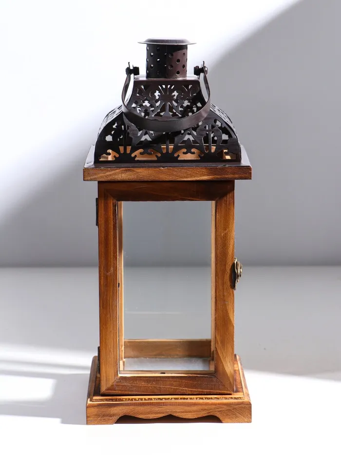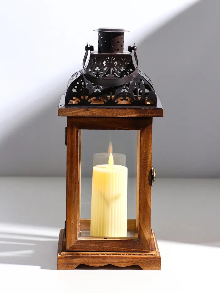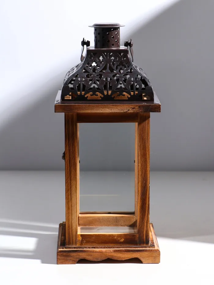 Деревянный подсвечник-фонарь на 1 свечу «Срезной крышей», т. коричневый, 33×14.5×14.5 см — Характеристики