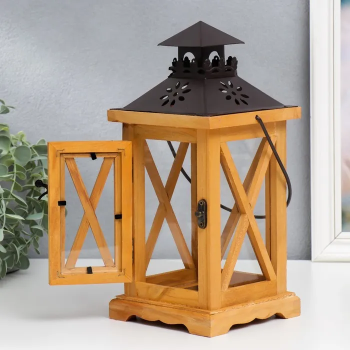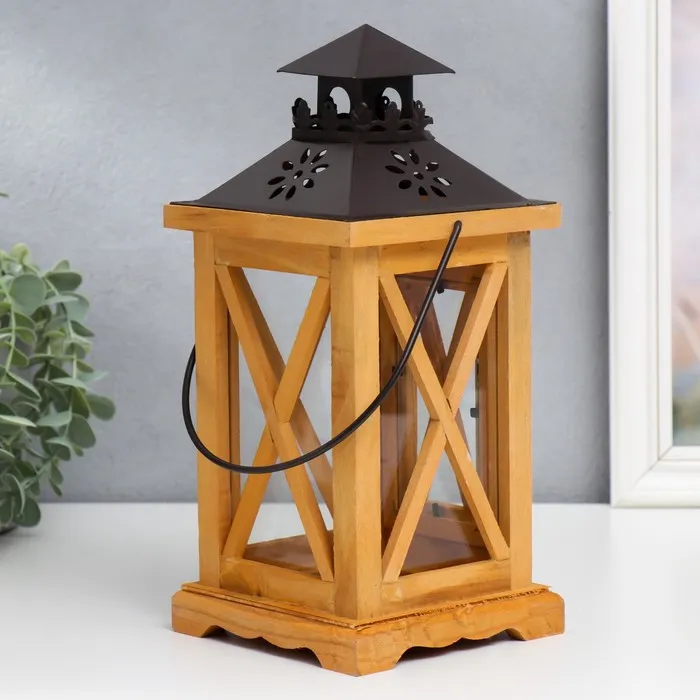 Деревянный подсвечник-фонарь на 1 свечу «Ставни», корица, 28×12.5×12.5 см — Характеристики