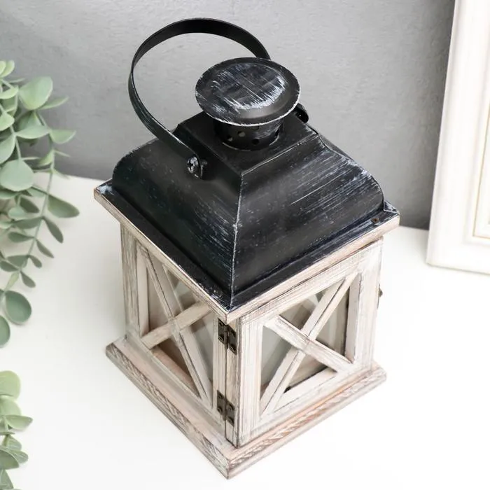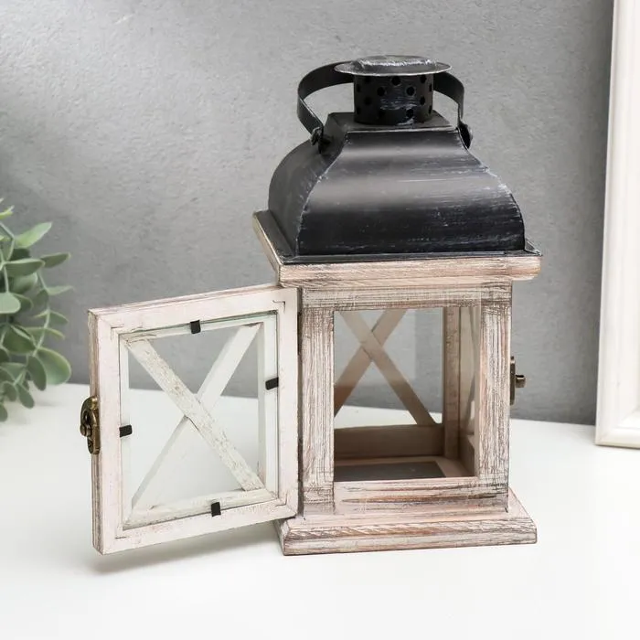 Деревянный подсвечник-фонарь на 1 свечу «Ставни», состаренный, 22×11.5×11.5 см — Характеристики
