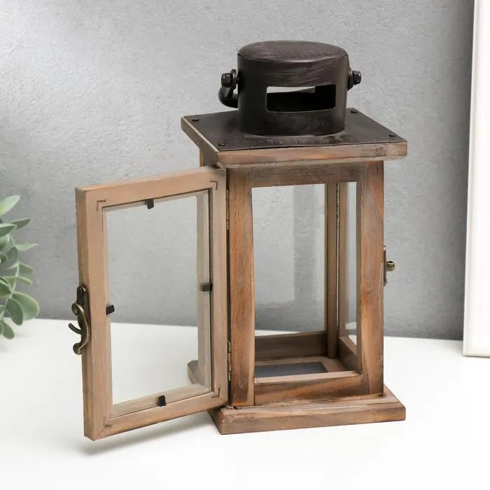 Деревянный подсвечник-фонарь на 1 свечу «Строгий», коричневый, 23×11.5×11.5 см — Характеристики