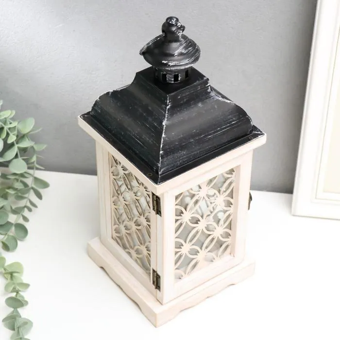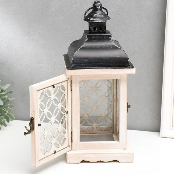 Деревянный подсвечник-фонарь на 1 свечу «Витраж с узорами», беж, 33×13.4×13.4 см — Характеристики