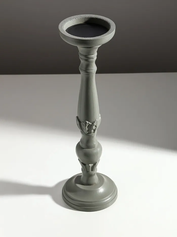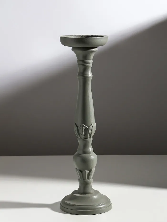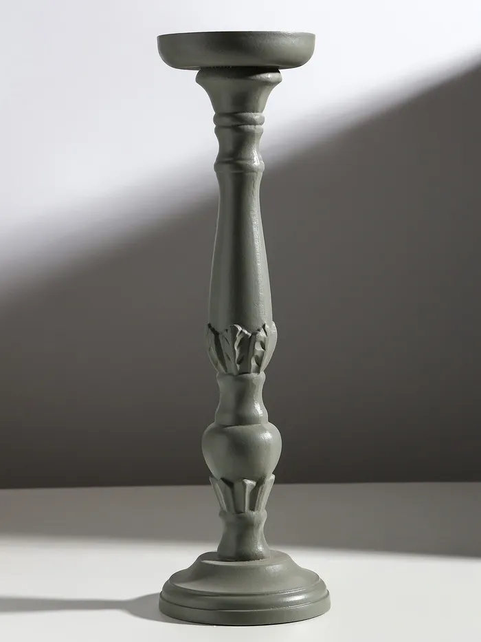 Деревянный подсвечник на 1 свечу «Колонна цветочная», серый, 10×10×37 см — Характеристики