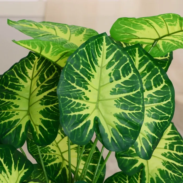 С реалистичными листьями, которые поражают своей формой и насыщенными цветами, алоказия создаст эффект живого растения, не требуя при этом никакого ухода. Она идеально подходит для любого стиля — от минимализма до бохо.