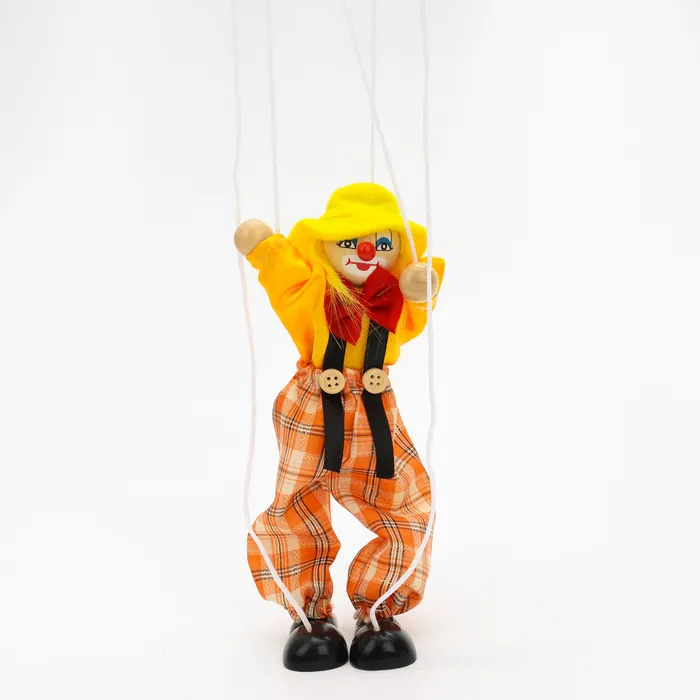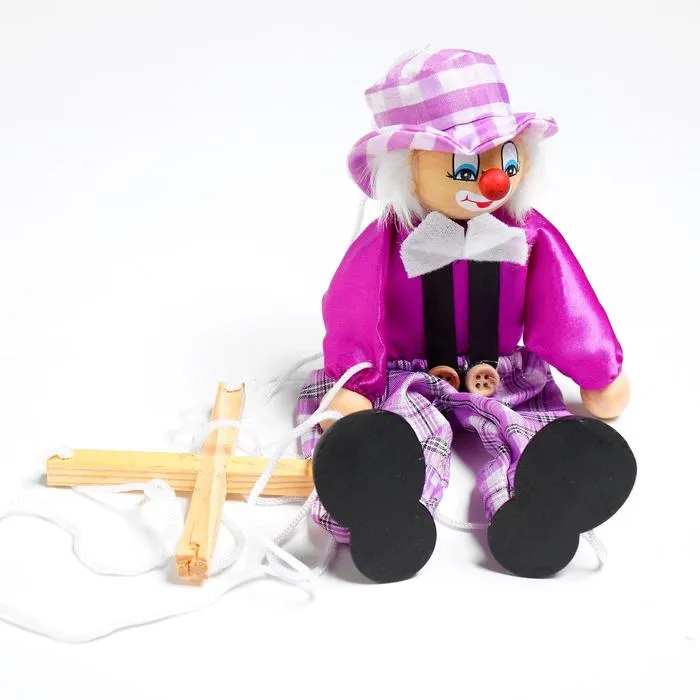Дергунчик на ниточках — полезный подарок для ребёнка. Игрушка изготовлена из натурального дерева, покрытого яркими нетоксичными красками. Красочный клоун оживает в руках у малыша — он забавно двигает ножками. Можно приглашать гостей и устраивать небольшие кукольные представления.