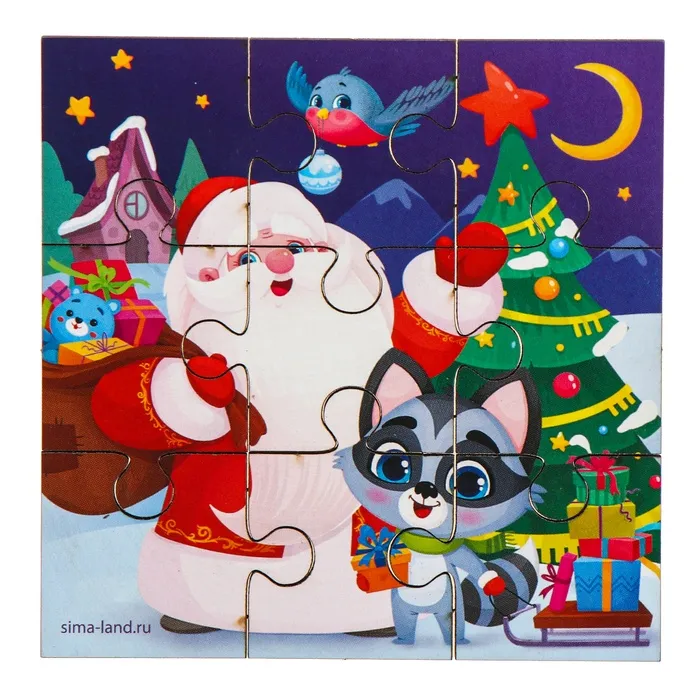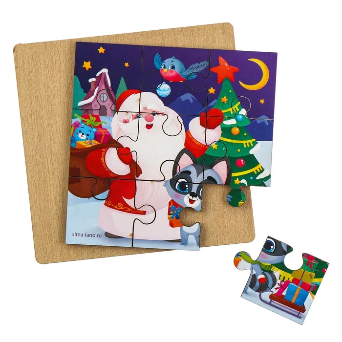 Дервянные пазлы на новый год «Дедушка Мороз», 9 деталей — Характеристики