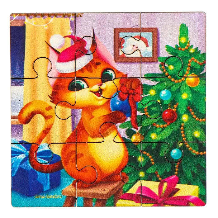 Дервянные пазлы на новый год «Подготовка к празднику», 9 деталей — Характеристики
