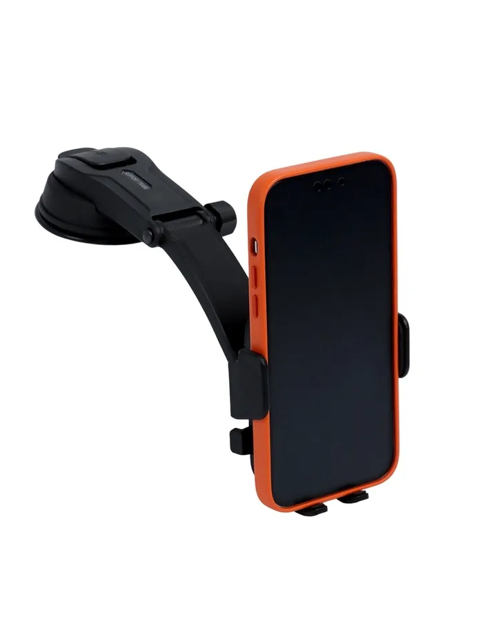 - Надёжный зажим фиксирует устройство и предотвращает его выпадение даже при движении по неровной дороге;
