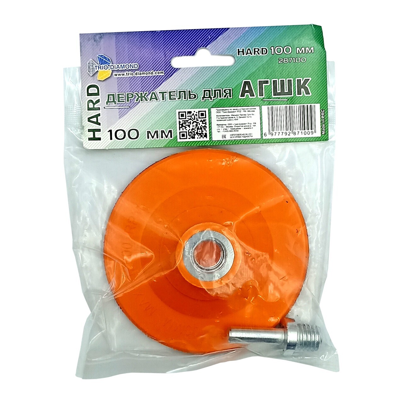 Этот держатель от TRIO-DIAMOND предназначен для надежного крепления алмазных гибких шлифовальных кругов (АГШК) диаметром 100 мм. Идеально подходит для использования в условиях, где требуется быстрая и качественная шлифовка или полировка.
