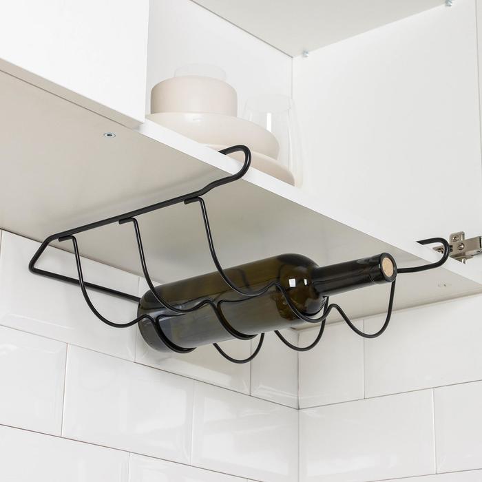 Держатель для бутылок Доляна, подвесной, металл, 32.5×31.5×13 см, чёрный