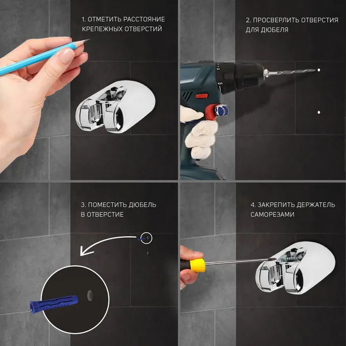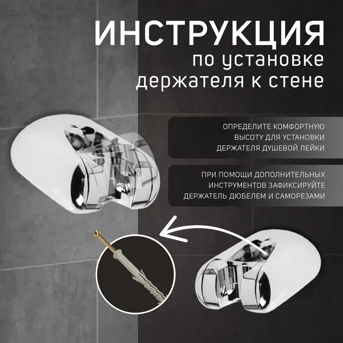 С держателем вы сможете легко регулировать угол наклона лейки, что обеспечивает максимальное удобство во время душа. Простота установки и надёжность материалов делают этот держатель незаменимым аксессуаром.