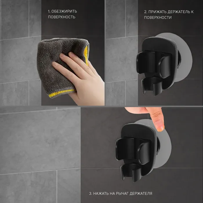 Выполнен держатель в строгом черном цвете, что придаёт изделию современный и стильный вид. Такой дизайн отлично вписывается в интерьеры в стиле минимализма и современности, добавляя элегантность и функциональность в вашу ванной. Идеальный выбор для создания комфортной атмосферы во время душа.