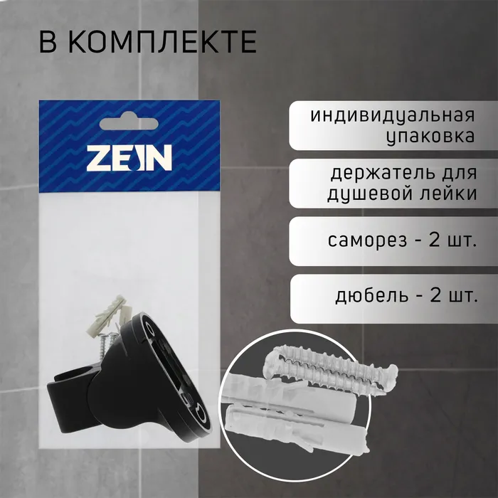 Держатель для душевой лейки ZEIN Z116 – это регулируемый аксессуар в элегантном черном цвете.