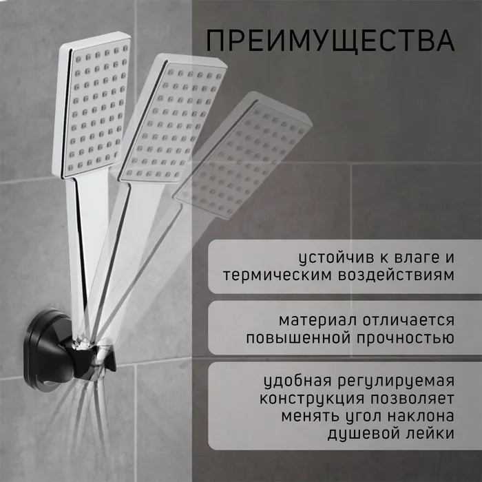 Он обеспечивает надежное крепление лейки и позволяет легко настраивать угол ее наклона, что обеспечивает максимальный комфорт при пользовании душем.