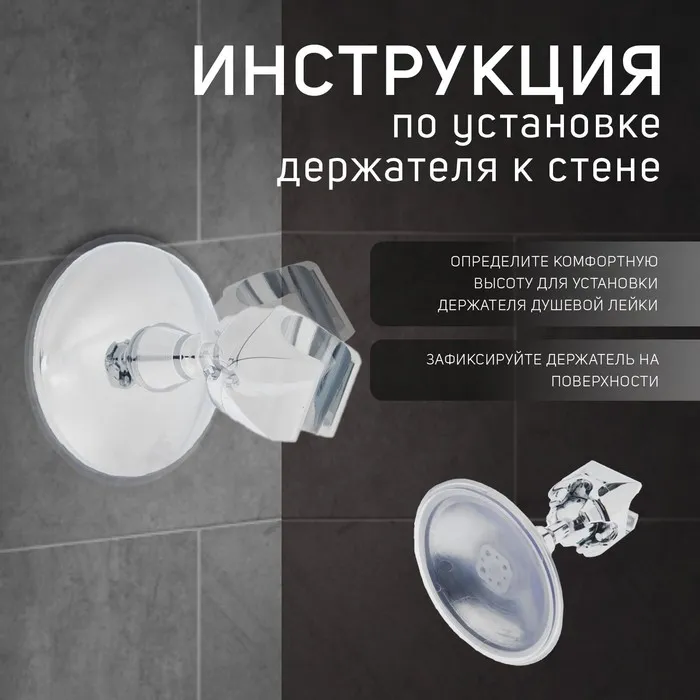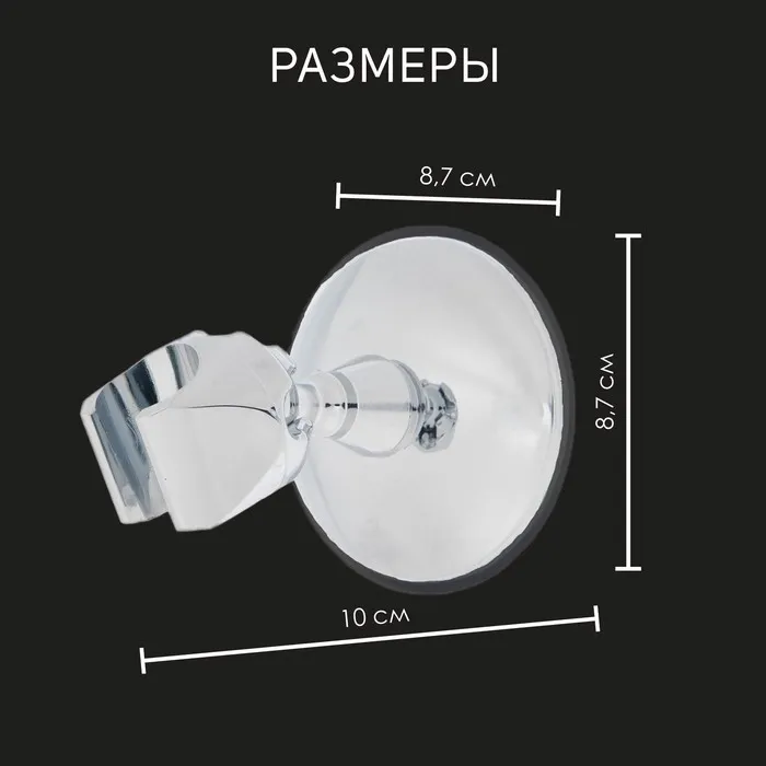 Изготовлен держатель из качественного пластика с хромированным покрытием. Уникальная вакуумная присоска обеспечивает надежную фиксацию на различных поверхностях, что делает установку простым и быстрым процессом без необходимости сверления.