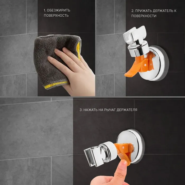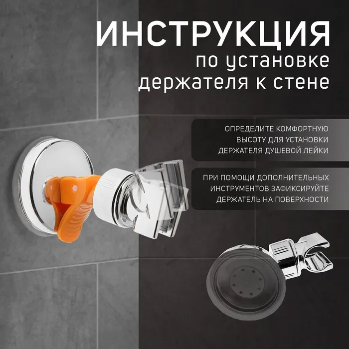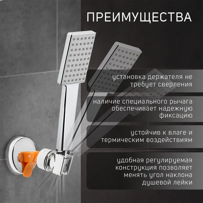 Держатель для душевой лейки ZEIN Z73, на вакуумной присоске, пластик, хром/оранжевый — Характеристики