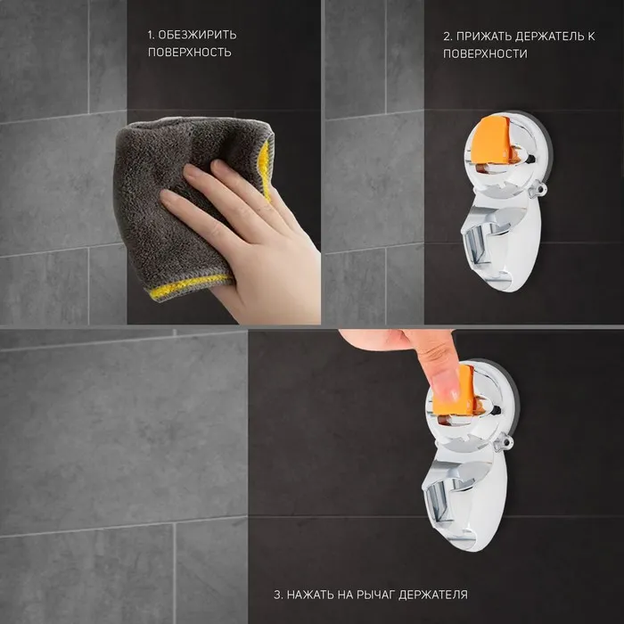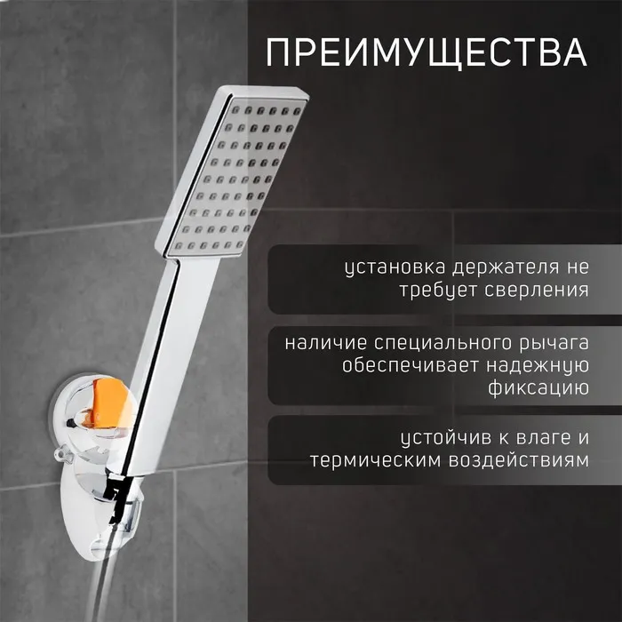 Изделие прочно крепится к чистой и гладкой поверхности. Хромовое покрытие защищает его от воздействия влаги. Крепление на вакуумной присоске позволит менять положение лейки в считанные секунды и обеспечит комфортное принятие душа.