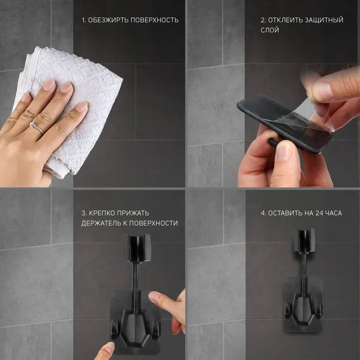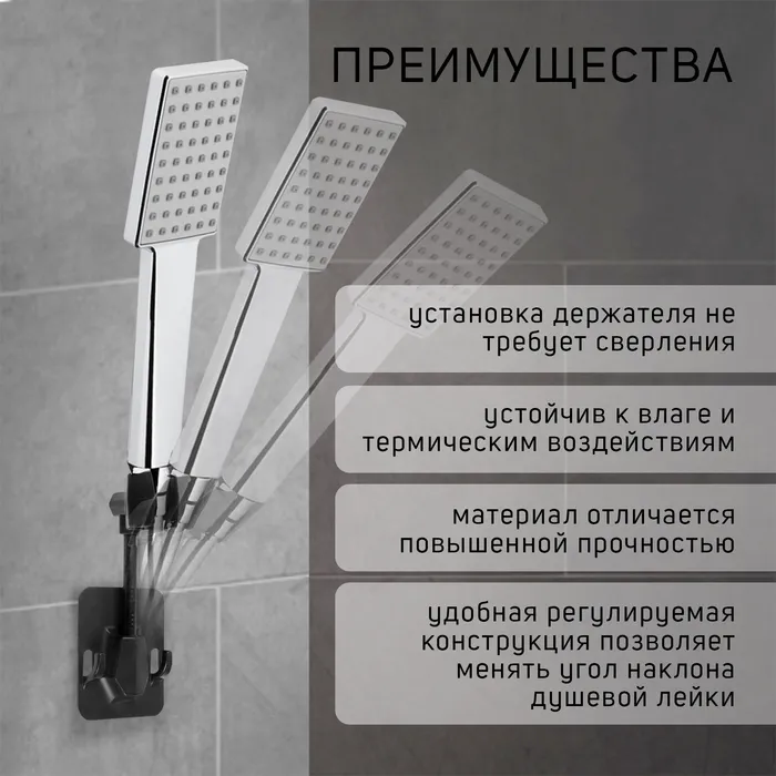 Изготовленный из прочного пластика, держатель представляет собой самоклеящийся держатель, что облегчает установку и не требует сверления. Регулируемый механизм позволяет легко настраивать угол наклона душевой лейки, обеспечивая комфортное использование для всех членов семьи.