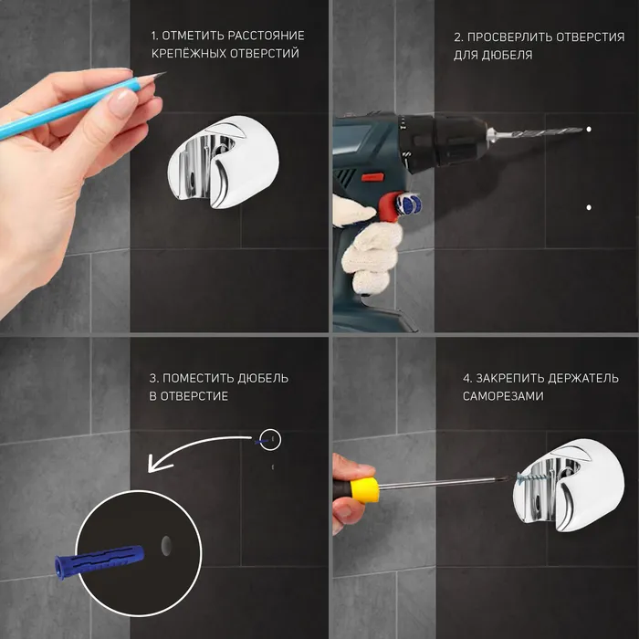 Данный держатель станет отличным дополнением к вашей душевой системе, обеспечивая функциональность и гармонию в интерьере.