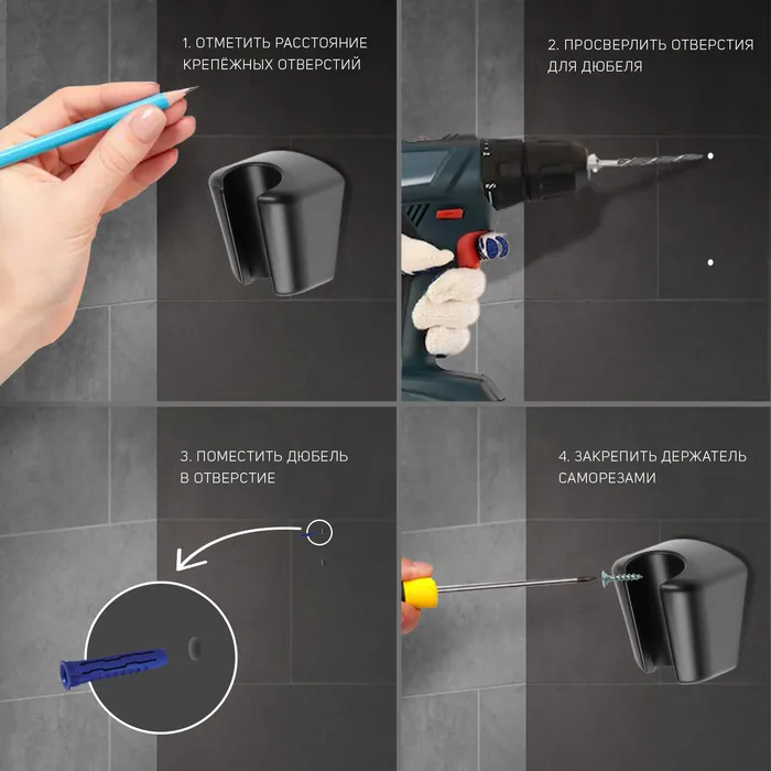 Держатель выполнен в элегантном черном цвете, легко вписывается в современные интерьеры и добавляет им стильный акцент. Он изготовлен из прочных материалов, которые обеспечивают долговечность и устойчивость к воздействию влаги.