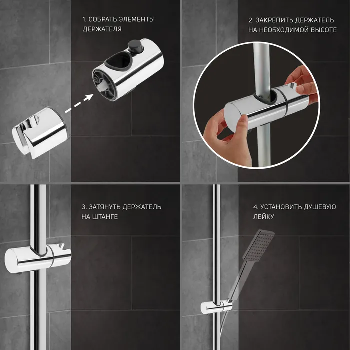 Держатель для душевой стойки ZEIN Z103, регулируемый, на штангу d=25 мм, хром — Характеристики