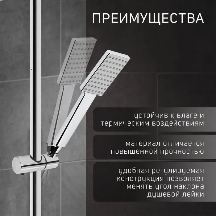 Держатель для душевой лейки ZEIN Z82, регулируемый, крепеж, пластик, хром